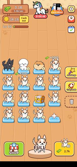 در حین بازی ، بازی باز می تواند پول ، سکه و هدایایی که از ادغام توله سگ ها به دست می آید را جمع آوری نموده و امتیاز خود را افزایش دهد.با ادغام تعداد مشخصی از توله سگ ها مراحل پشت سرگذاشته شده و مرحله جدیدی باز می شود.